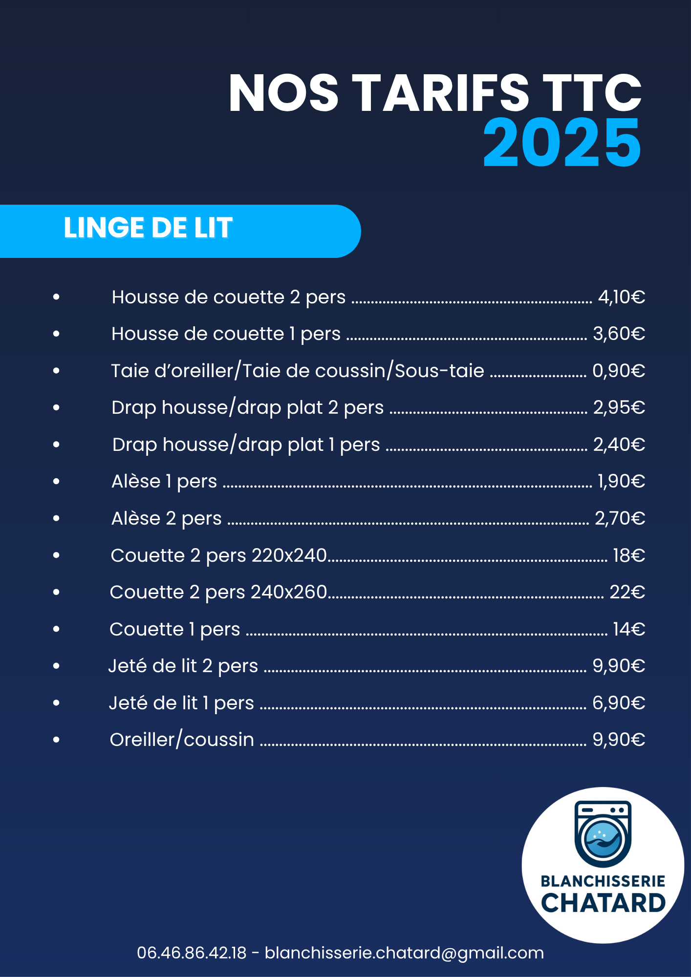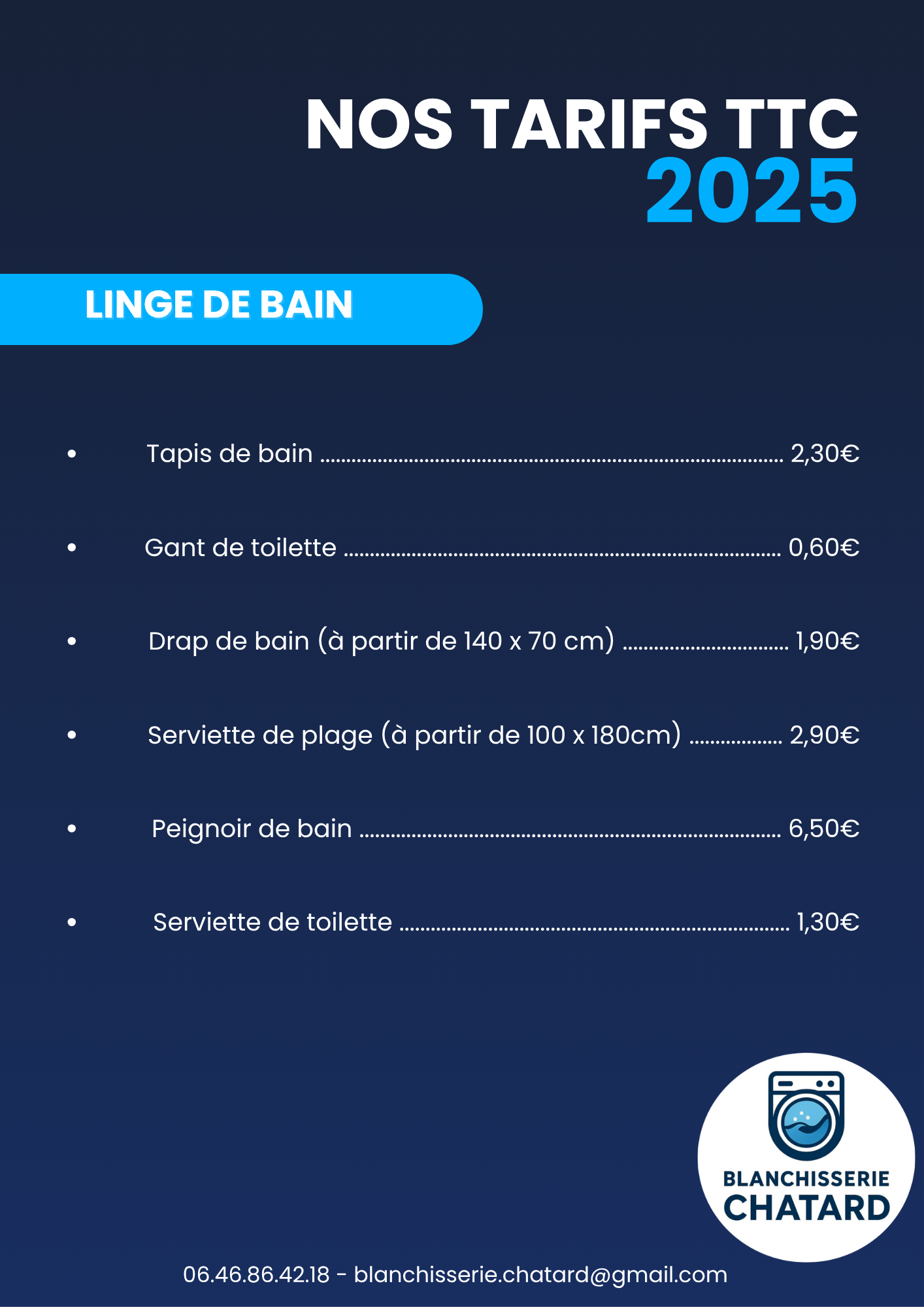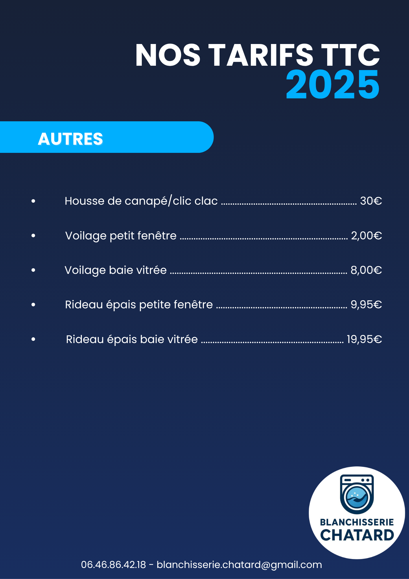 Soucieuses d’être totalement transparentes avec nos clients, vous retrouverez ci-dessous nos tarifs.